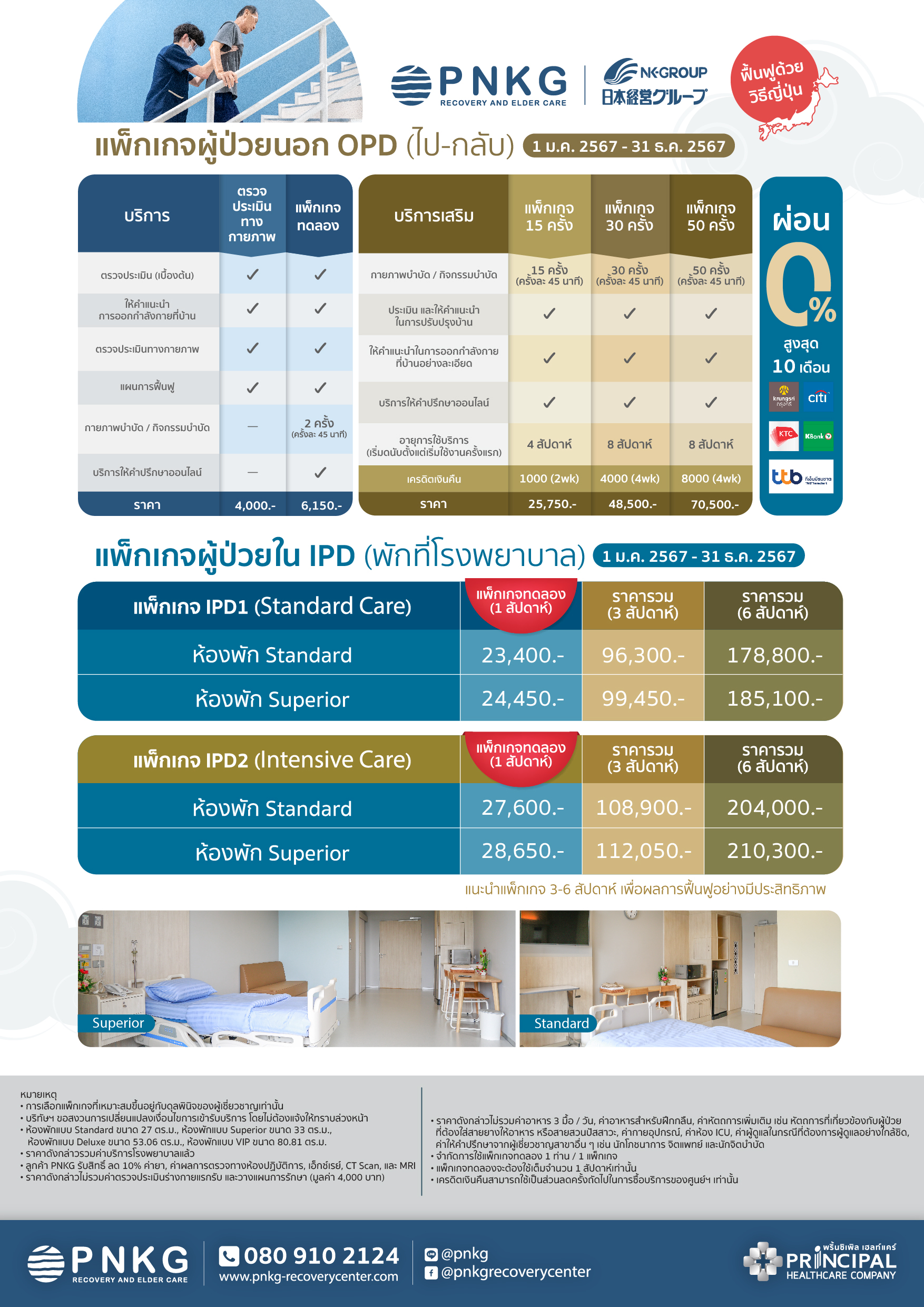 อัปเดตแพ็กเกจฟื้นฟูร่างกายสำหรับ IPD (ผู้ป่วยใน) พร้อมรายละเอียดแต่ละแพ็กเกจของทาง PNKG Recovery and Elder Care ศูนย์ฟื้นฟูผู้ป่วยโรคหลอดเลือดสมอง ฟื้นฟูผู้ป่วยหลังผ่าตัด โรคหลอดเลือดสมอง โรคระบบประสาท และโรคอื่น ๆ